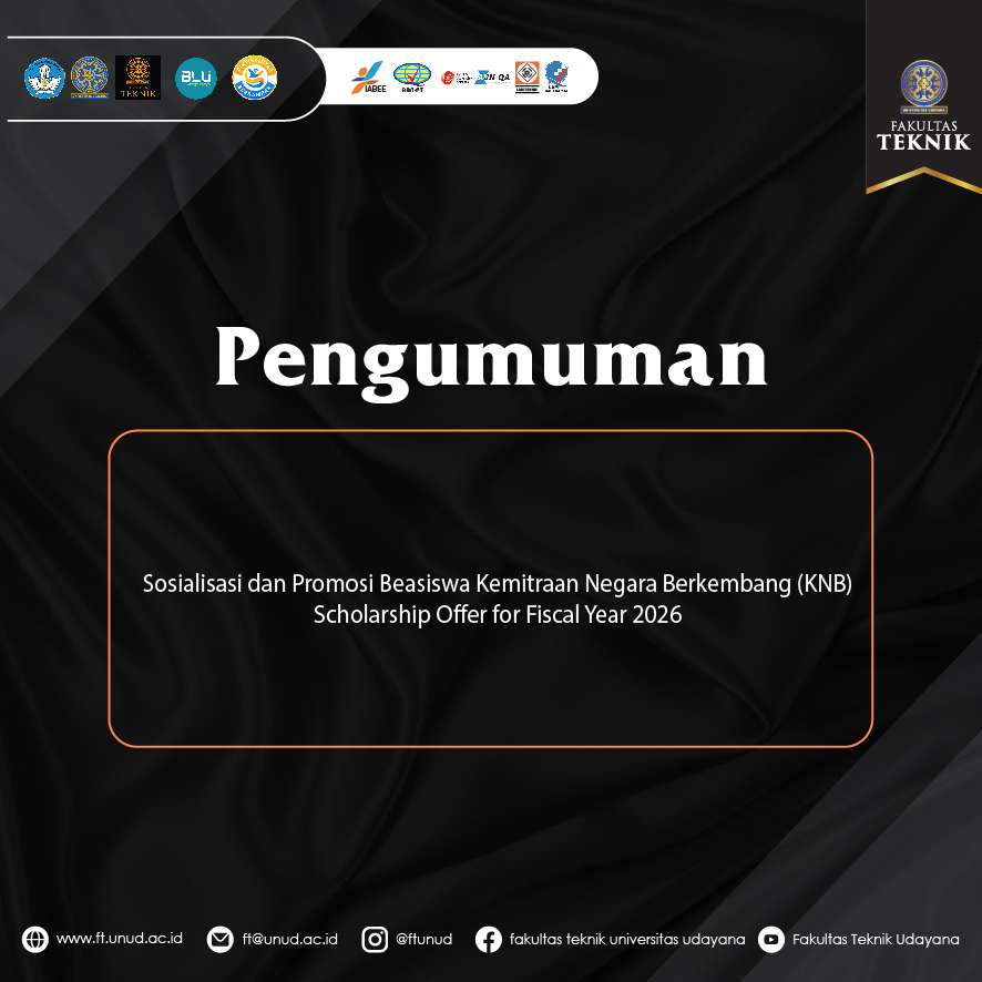 Diharapkan melalui kegiatan ini, sivitas akademika Fakultas Teknik Universitas Udayana dapat memahami secara komprehensif mekanisme Beasiswa KNB serta berkontribusi aktif dalam mendukung internasionalisasi pendidikan.